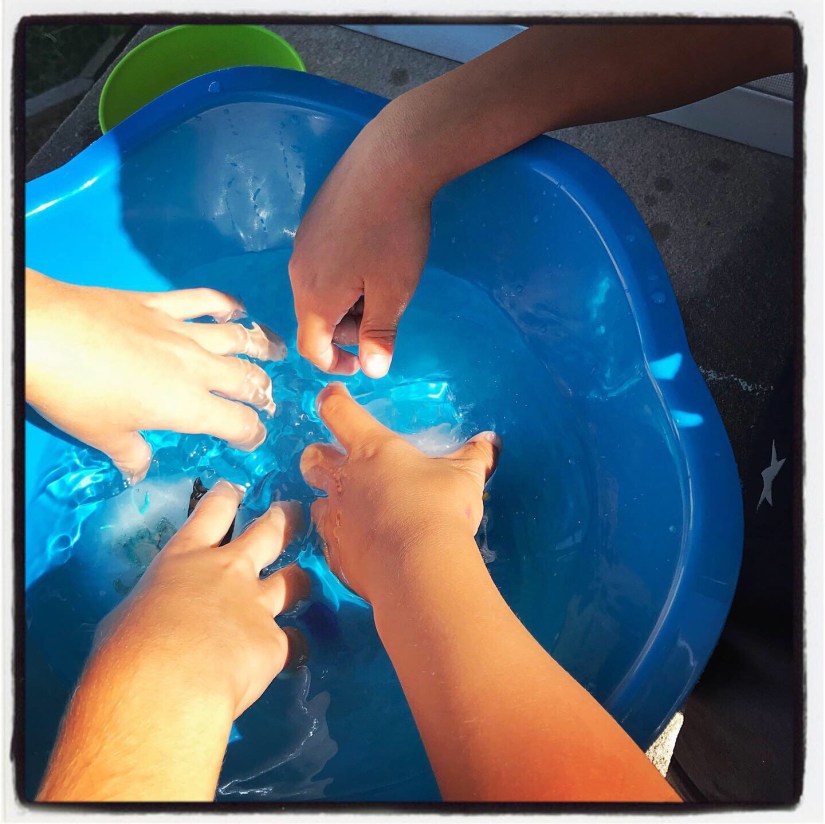 I also froze some plastic sea creatures in ice and let the kids experiment with different ways of trying to get them out.